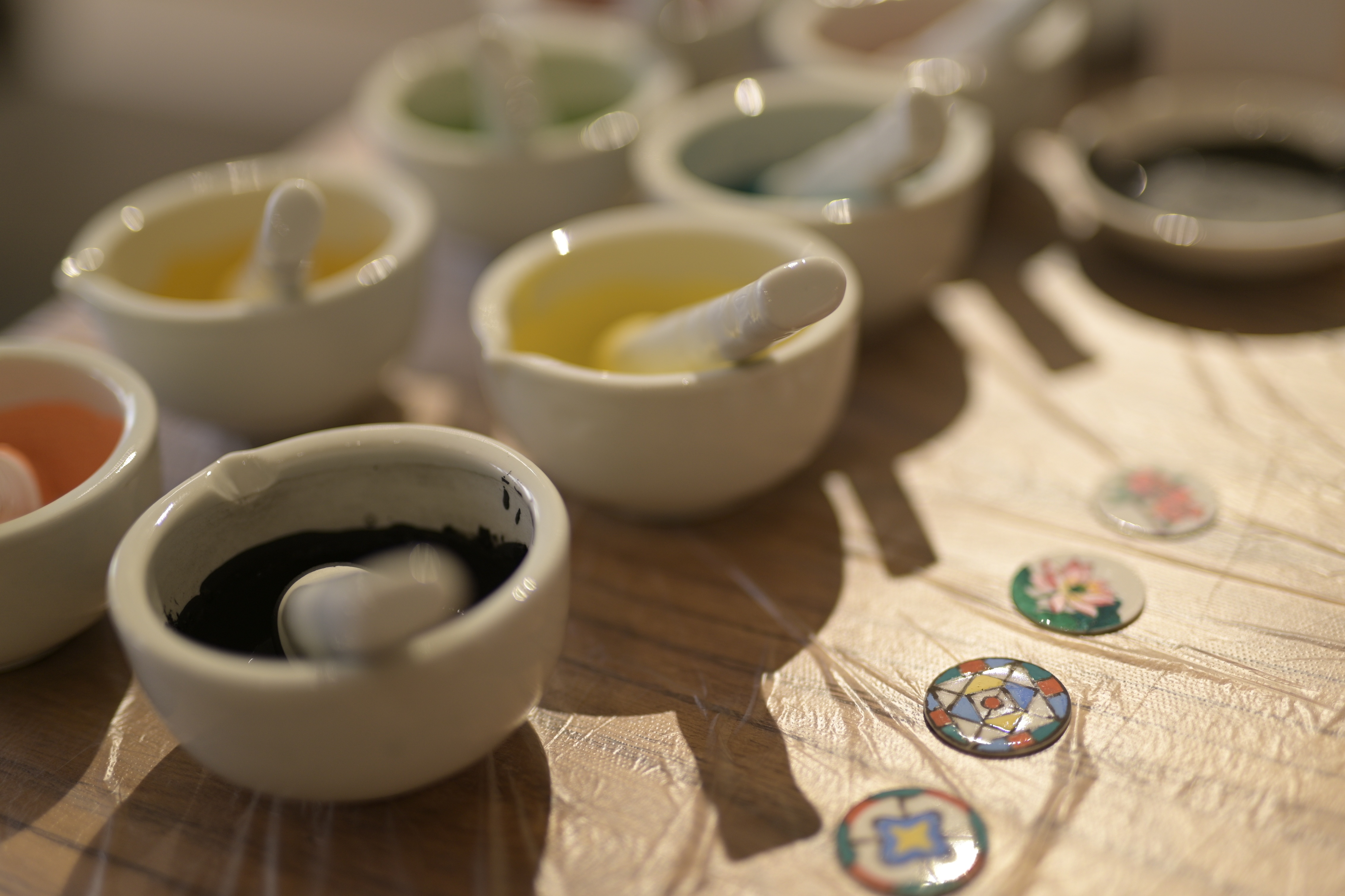 此次,为了体验广彩创造,居卓钧、林晓桐、刘嘉骏三位同学来到广州琉璃瓜子陶瓷艺术馆。他们将在谭广辉本分的训诲下,共同绘制广彩吊坠作品,为我方和家东说念主奉上一份好意思好祈福。